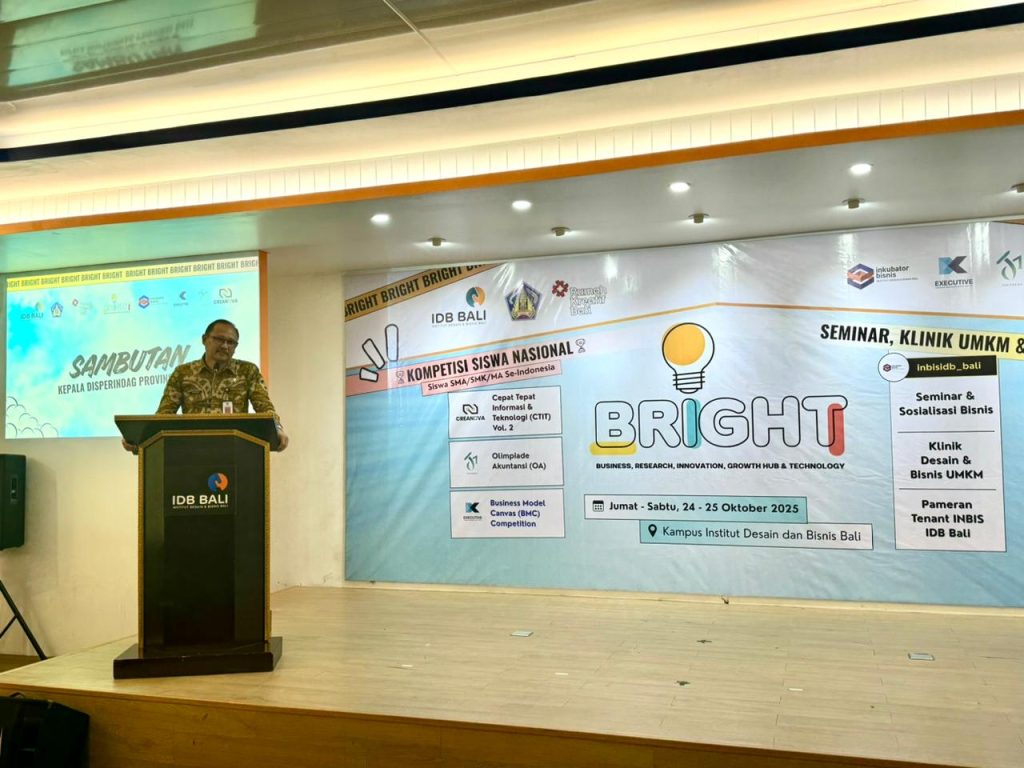 Denpasar, 24 Oktober 2025 – Dinas Perindustrian dan Perdagangan Provinsi Bali menunjukkan komitmennya dalam mendukung penguatan sektor industri kecil dan menengah (IKM) serta usaha mikro kecil menengah (UMKM) melalui kegiatan Klinik Desain dan Bisnis bagi UMKM, yang diselenggarakan oleh Institut Desain dan Bisnis (IDB) Bali.